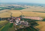 U severovýchodního okraje Prahy se rozkládá Jenštejn, obec s radiálně řešeným půdorysem. Představuje až modelový příklad různých stavebních fází – dnes poněkud zanikají zbytky středověkého hradu v centru historické části, vpředu dominuje zemědělský areál, vpravo se táhne nová výstavba jako spíše negativní ukázka urbanizace. Foto M. Gojda