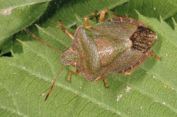 Crypsis is the ability of organism to avoid observation or detection by other organisms. It may be either a predation strategy or an antipredator adaptation. Many animals have evolved that way so they visually resemble their surroundings by changing their colour. These coloration changes can be experimentally provoken by physical parameters during the development of the nymphs such as different humidity. It was observed that the coloration of the species depends on the type of food they consume eg. if grasshoppers genus Acrida consume fresh grass their colour will be green, in case of dry grass consumption their colour will change to brownish. This short report illustrates coloration changes (from green to brown) of the green shield bug (Palomena prasina) during autumn. These specimens were caught at nearby town Vlašim (Central Bohemia). We recorded the shortest time for color changing of imagos (from bright green to uniform brown coloration) being nine days in experimental insectarium. The air temperature influences the rate of color changing. It is evident that the brown colour is an indicator of the diapause.