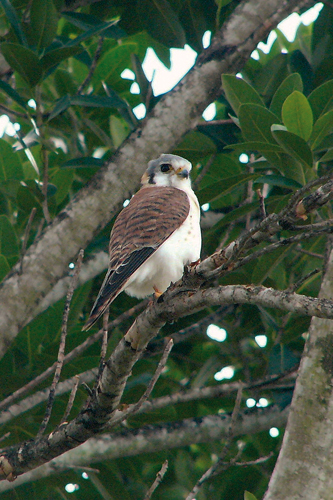 Z menších dravců se ve městech i na venkově ve Střední Americe a na Kubě běžně vyskytuje poštolka pestrá (Falco sparverius). Foto S. Chudý