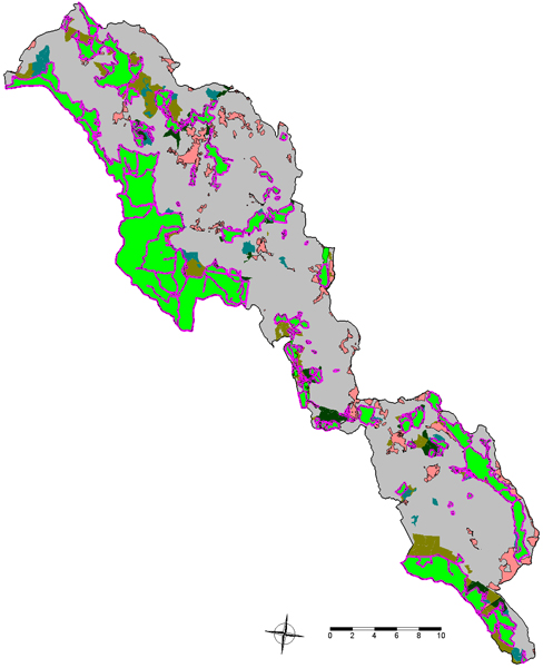 Obr. IV. Území takzvaného speciálního managementu, které účelně propojuje existující I. zóny, bylo definováno na základě rozhodnutí ministra životního prostředí (č. j. 18517/ENV/06 – 972/620/06) ze dne 5. března 2007 (viz obr. 3 v tištěné Živě). Orig. K. Matějka (s využitím dat Správy NPŠ a autorů návrhů)