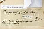 Violka vyvýšená (Viola elatior) rostla v Brně-Komárově „za Královským mlýnem na loukách na okraji křovin“, jak poznamenal na etiketě ke svému nálezu z 8. června 1836 Wilhelm Tkany. Uloženo v herbáři Masarykovy univerzity v Brně. Foto J. Danihelka