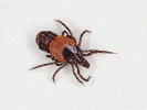 Samec (menší, zespodu) a samice (větší, shora) klíštěte obecného (Ixodes ricinus) při páření. Foto J. Erhart