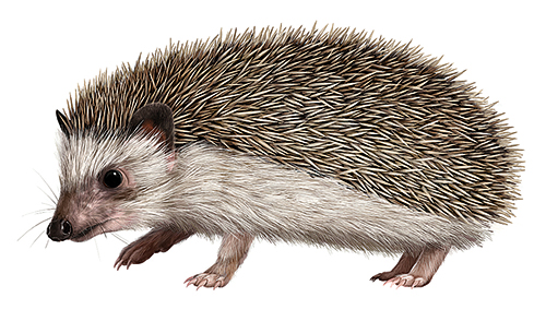 Krásní či oškliví? Série ilustrací savců pro výzkum týkající se hodnocení krásy zvířat. Ježek bělobřichý (Atelerix albiventris). Digitální kresba v programu Photoshop. Orig. M. Nacházelová (2. místo, Vědecká ilustrace)