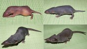 Bělozubka hnědá (Suncus murinus) patří k největším zástupcům rejskovitých, je vysoce přizpůsobivým synantropním savcem a také významným modelovým druhem v medicínském výzkumu, ale těší se oblibě i u některých chovatelů exotických savců. Někdy jsou tato zvířata úspěšně chována v párech a v takovém případě ráda sdílejí hnízdo. Na obr. samec (větší jedinec nahoře), samice a nově narozené mládě. Bělozubky hnědé jsou natolik masožravé, že v chovu nepohrdnou ani usmrcenou myší. Na tomto snímku u nich zapracovaly rodičovské pudy a myší kůží si vystlaly pelech. Foto I. Schneiderová