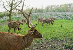 Boční pohled na typické a relativně jednoduché utváření paroží jelena bělohubého (Cervus albirostris). Foto P. Král