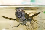 Hlavu motýlkovce afrického (Pantodon buchholzi) charakterizuje v poměru k tělu velký ústní otvor. Foto V. Gvoždík
