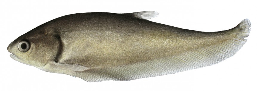 Ilustrace nožovce malého (Notopterus notopterus) z knihy The Fishes of India (Francis Day 1878), orig. C. Achilles.