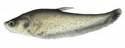 Nožovec malý (Notopterus notopterus) se vyskytuje jako jediný i v brakických vodách. Dnes je zřejmé, že se pod tímto jménem skrývá několik druhů. Orig. R. Bošková, upraveno podle: T. R. Roberts (1992)