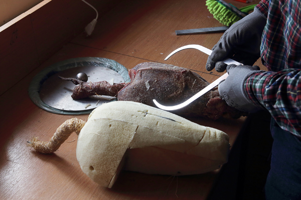 Příprava polyuretanového těla k vyhotovení preparátu orla skalního (Aquila chrysaetos). Foto J. Zátorský
