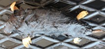 Mechanické poškození preparátu káně lesní (Buteo buteo) – vypadávání peří. Foto z archivu autorů