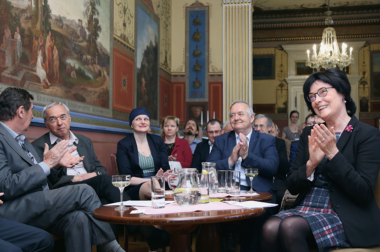 Slavnostního odpoledne se účastnili se představitelé vedení AV ČR – zleva Petr Ráb, Jan Řídký, Markéta Pravdová, Zdeněk Havlas a Eva Zažímalová. Foto L. Svoboda, AV ČR