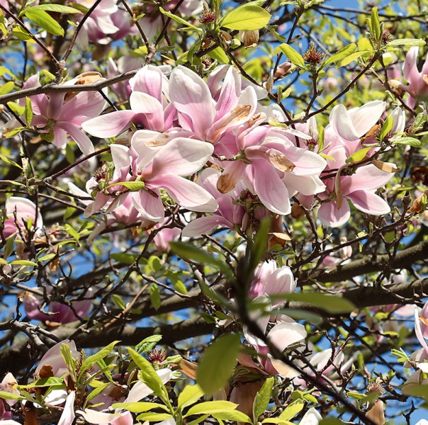 Kvetoucí šácholan – magnolie vedle venkovní terasy Lannovy vily. Foto L. Svoboda, AV ČR