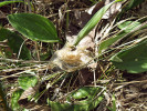 Larvální hnízdo hnědáska černýšového (Melitaea aurelia) na jitrocelu prostředním (Plantago media). Mašovice, srpen 2017. Foto A. Sucháčková Bartoňová