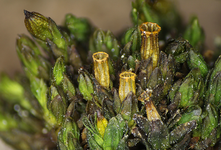 Šurpek běločepka (Orthotrichum scanicum) má obústí s nápadnými 16 brvkami endostomu. Blíže v textu. Detailní pohled na peristom v elektronovém mikroskopu je na obr. 12. Roste i v České republice a patří zde ke kriticky ohroženým druhům. Foto V. Plášek