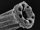 Šurpek Rogerův (O. rogeri) Pohled na peristom v elektronovém mikroskopu. Foto V. Plášek