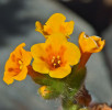 Květenství vysoce ohrožené Amsinckia. grandiflora(Boraginaceae) – jedinec s dlouhými tyčinkami a krátkými čnělkami.