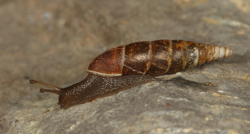 Vřetenovka zaměněná (Cochlodina costata), pro niž jsou opuky v Poorličí ostrovní enklávou s atraktivním potravním zdrojem – pohybuje se po povrchu strmých stěn a konzumuje drobné epilitické organismy. Foto R. Coufal