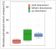 Podíl jednotlivých kohort zmlazení v průběhu disturbance a po ní. Graf demonstruje dominanci banky zmlazení – přirozené obnovy, která byla v porostech přítomna již před samotnou disturbancí. Podle: J. Brůna a kol. (2019)