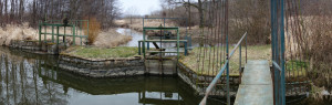 Akvadukt přes Podřezanskou stoku ukazuje výškové rozdíly v komplikované soustavě přívodních náhonů a odvodňovacích kanálů rybniční soustavy na Třeboňsku. Foto T. Kučera