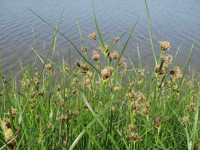 Kvetoucí kamyšník, velmi pravděpodobně k. širokoplodý (B. laticarpus). Podobný k. vrcholičnatý (B. yagara) roste na Dehtáři vzácně na několika místech; lze je rozlišit jen v plodném stavu. Foto K. Šumberová