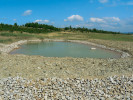 Nově vybudovaná rekultivační nádrž na výsypce, břehy opevněny makadamem. Foto I. Přikryl