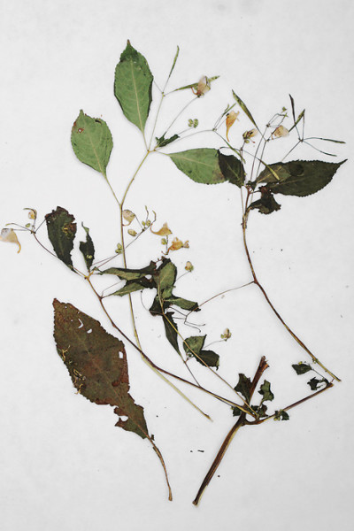 Herbářová položka části kvetoucí lodyhy netýkavky Edgeworthovy (Impatiens edgeworthii). Foto I. Suchara