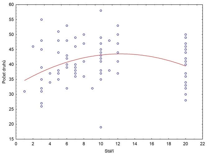 Old fields around the Czech villages, mainly Sfânta Elena, Romania, found 200 years ago, show how traditional landscape management can affect biodiversity. The dependence of the number of species on the abandoned field’s age displays the unimodal shape of this relationship with the maximum of diversity in plant stands approximately thirteen years old. The influence of the key factors on the plant composition of the old fields suggests a significance order as follows: time of land abandonment, burning and heat load index – natural microsite conditions.