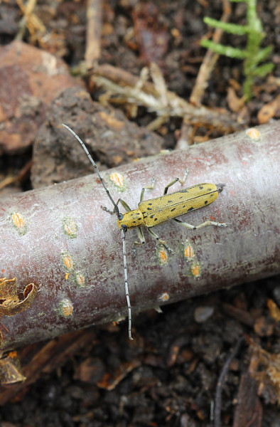 Východoasijský kozlíček Eutetrapha sedecimpunctata na požářištích využívá množství mrtvého dřeva. Foto Z. Hanč