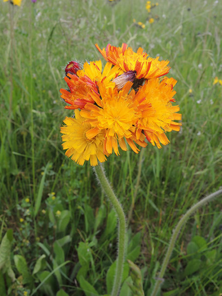 Běžným rodem české flóry, u jehož druhů se vyskytuje apomixie, je chlupáček (Pilosella). Chlupáček hnědočerný (P. fuscoatra) je kříženec chlupáčků oranžového a trsnatého (P. aurantiaca × P. caes pitosa), který vzniká poměrně pravidelně při společném výskytu rodičů. Loučka u hřbitova v Praze-Hrnčířích, červen 2020. Foto F. Krahulec