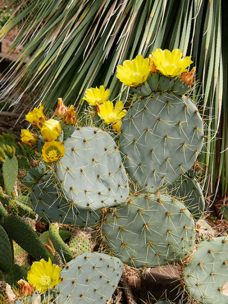 Opuntia robusta ze středního Mexika se vyznačuje články o průměru až 40 cm a tloušťce 6 cm. Články spadlé na zem mohou zakořenit a vytvořit novou rostlinu. Vegetativní reprodukce je doplněna adventivní embryonií, která představuje další efektivní způsob šíření. Blíže v textu. Royal Botanic Gardens, Kew, Velká Británie. Foto R. Samek