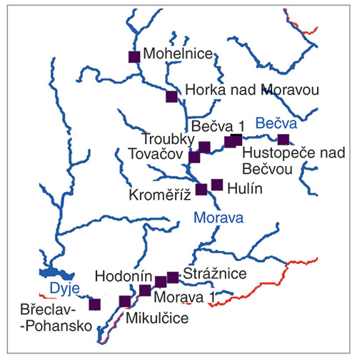 Mapa zdrojů doposud zpracovaných subfosilních kmenů dubů. Orig. J. Kyncl