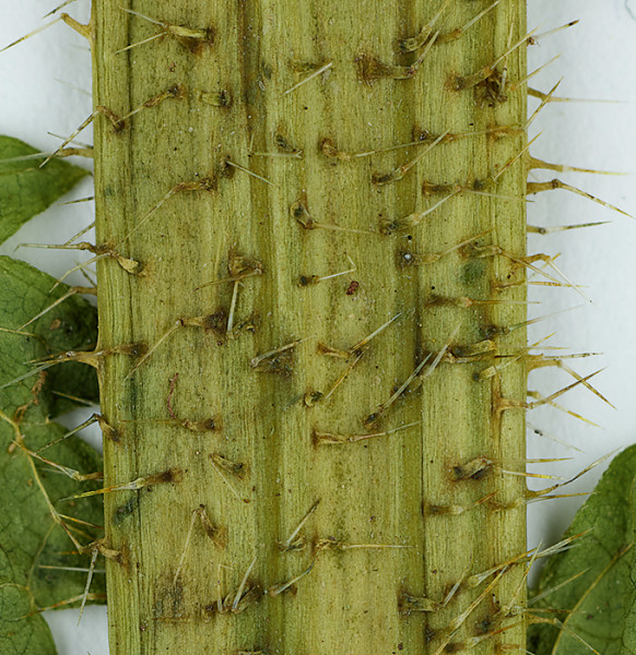 Odění střední části lodyhy u rostliny k. lužní na podzim vyrostlé rostliny k. lužní. V detailu – ve skutečnosti je lodyha podobně široká jako na ostatních snímcích. Kopřiva lužní má na lodyze pouze žahavé chlupy. Snímky herbářových položek. Foto Z. Vaněček