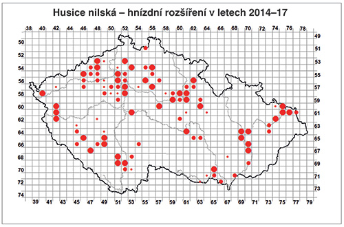 The long-term range and population trends of birds breeding in the Czech Republic are very well documented thanks to two parallel monitoring projects. The oldest one, started in 1973, is the mapping of breeding bird distribution. The field data were collected from squares 12 x 11.1 km (10´of longitude and 6´of latitude) with the participation of several thousand citizen scientists. The results are four Atlases of Breeding Birds in the Czech Republic. The second project is the Breeding Bird Monitoring Program, which was established in 1981 and is also based on the principles of citizen science with the participation of hundreds of collaborators. Birds are counted annually on the same dates on point transects with 20 counting points for exactly 5 minutes at each point. The result is the identification of the population trends of all bird species in the Czech Republic, the determination of increasing, stable and decreasing species. Both projects help to determine the abundance of individual species in our country.
