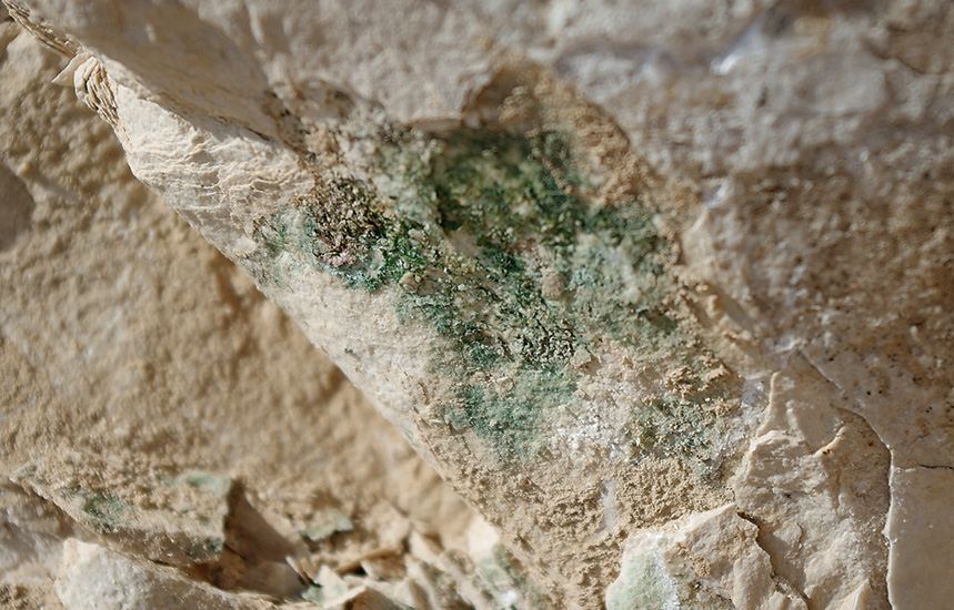 Endoliths, the microorganisms that colonise the rock environment especially in areas with extreme conditions (deserts and high mountains), are thus protected from UV radiation and desiccation. Evaporitic minerals such as gypsum and halite tend to be richly colonised by endoliths forming pigments as protection against UV radiation. Research on the detection and distribution of endoliths and their pigments in evaporitic rocks is also relevant for the search for traces of life on Mars.