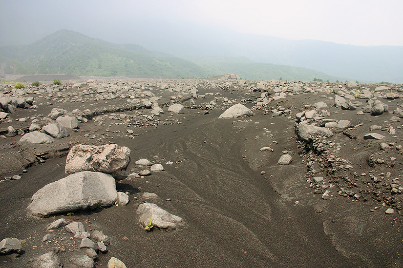 Uloženiny současných laharů – toků bahna a kamení – na úpatí vulkánu Sakurajima. Foto V. Rapprich
