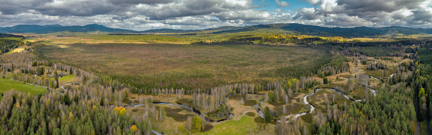 Pohled na Mrtvý luh, který je rozlohou zhruba 300 ha největším rašeliništěm v České republice. V popředí tok Studené Vltavy. Foto R. Plíhal