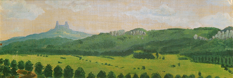 Niva Libuňky v době vyhlášení chráněné krajinné oblasti Český ráj v r. 1955. Malba Miloslava Šťastného, prastrýce autora článku