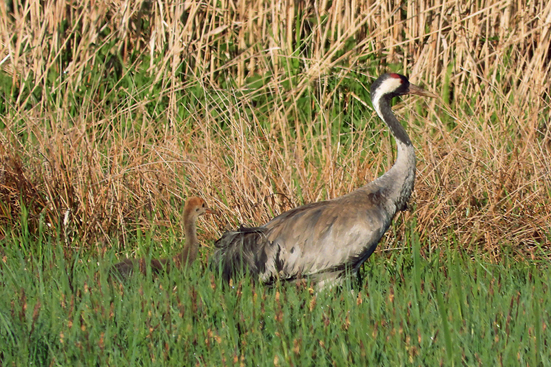 Jeřáb popelavý (Grus grus) s úspěšně vyvedeným mládětem v r. 2025. Foto V. Šťastný