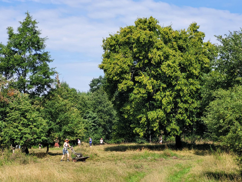 Nejcennější plochy bezlesí představují hrúdy se zbytky primárních stepních trávníků s výskytem celé řady ohrožených druhů rostlin i hmyzu. Jedním z prvních projektů po vyhlášení CHKO Soutok bylo přesné vyhodnocení stavu jejich vegetace a realizace managementu nejvýznamnějších ploch. Na snímku sečení Dlouhého hrúdu (2025). Foto Archiv AOPK ČR