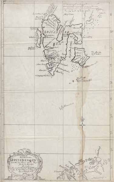 Svalbard (Spitsbergen) na výřezu mapy Jacoba Theunise z r. 1715. Zdroj: Norsk Polarinstitutt