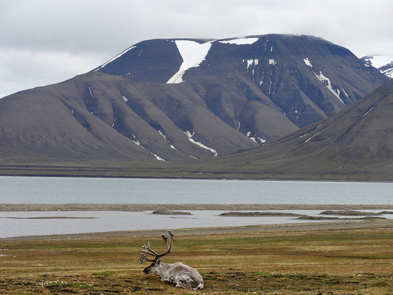 Svalbard se kromě vědeckého působiště stal atraktivní turistickou destinací. Veřejnost přitahuje drsná krajina a možnost spatřit volně žijící polární živočichy. Ikonickým je třeba sob špicberský (Rangifer tarandus platyrhynchus). Foto M. Hanáček (2011)