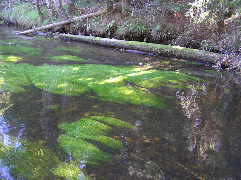 The upper Vltava above Lipno Reservoir in the Šumava National Park is home to the Freshwater Pearl Mussel (Margaritifera margaritifera), a species of the fast-flowing cold rivers and streams. This article describes its environment in detail, from a chemical point of view, including sources of pollution. It focuses on benthic organisms as well, and the aquatic vegetation community, which provides shelter for aquatic animals and insects. The shallow meandering stream is threatened by boaters, which is why the park administration regulates boating.