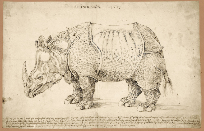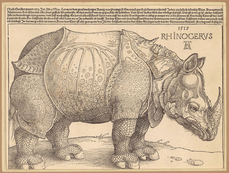This text presents the discovery of the first edition of Dürer’s Rhinoceros in the Czech Academy of Sciences Library collection, whose authenticity was confirmed through material analysis, and it also explains its significance. It traces the story of the rhinoceros that arrived on Portuguese soil in 1515, whose previously unknown appearance became widely known thanks to Albrecht Dürer’s woodcut. Although the artist never saw the animal himself, his expressive print became iconic and for centuries shaped the European image of this extraordinary exotic creature.