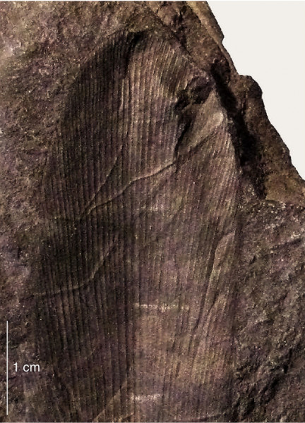 List kordaitového stromu rodu Rufloria. Perm (299–252 milionů let), Sibiř. Foto Z. Šimůnek