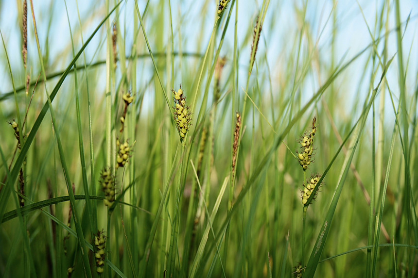 Ostřice černoklasá (Carex melanostachya) – dominanta zachovalých aluviálních luk. Foto J. Těšitel