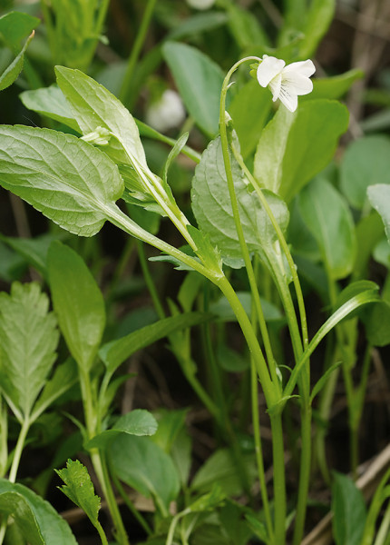 Violka slatinná (Viola stagnina) s typickou bílou barvou květu a krátkými palisty je nejvlhkomilnější z violek na Soutoku. Foto J. Těšitel