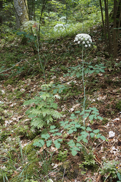 I u nás známe z obdobných stanovišť kontinentálních borů např. smldník olešníkový (Peucedanum oreoselinum) a hladýš širolistý (Laserpitium latifolium, na snímku). Foto A. a T. Kučerovi