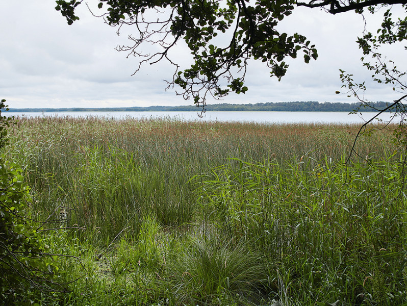 Morénou hrazené jezero Wigry se skřípincem jezerním (Schoenoplectus lacustris) v pobřežních rákosinách. Foto A. a T. Kučerovi