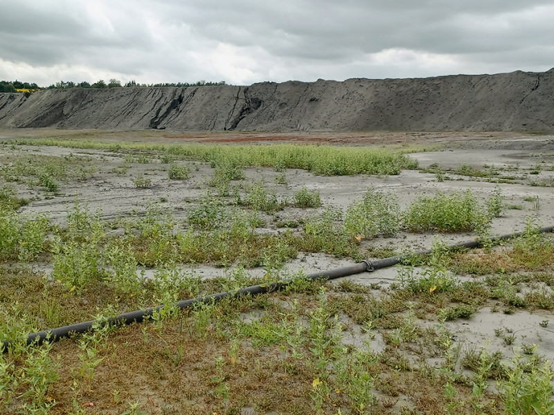 Chvaletické struskopopílkové odkaliště, iniciální sukcesní stadium s lebedou lesklou (Atriplex sagittata), merlíkem sivým (Chenopodium glaucum) a dalšími jednoletými druhy. Foto K. Prach