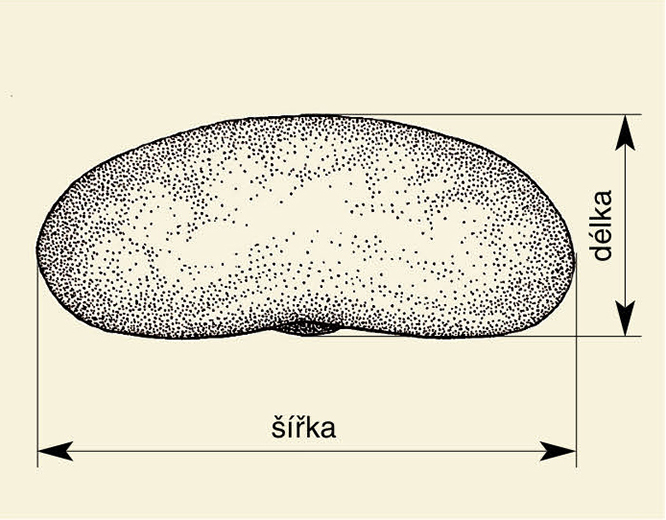 Měření délky a šířky u semen delších než širších.Orig. J. Moravec, upraveno